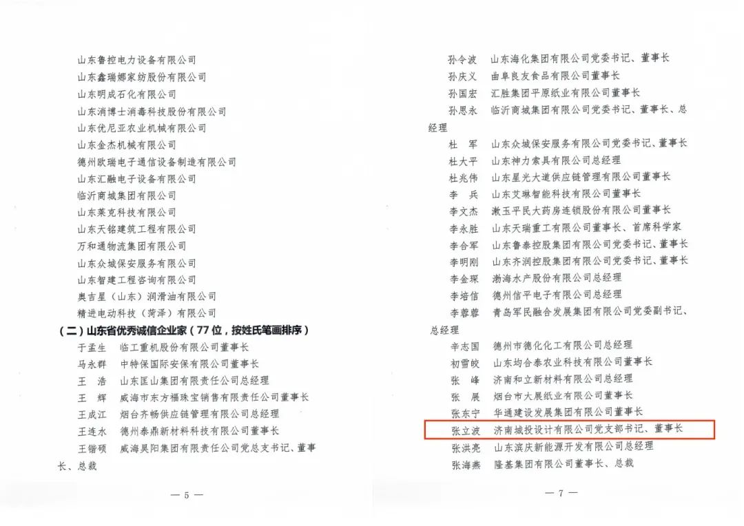 會(huì)議表彰了全省87家誠(chéng)信企業(yè)、77名優(yōu)秀誠(chéng)信企業(yè)家、25家誠(chéng)信建設(shè)示范企業(yè)和15名誠(chéng)信建設(shè)示范企業(yè)領(lǐng)軍人物。其中,濟(jì)南城投設(shè)計(jì)有限公司被授予“山東省誠(chéng)信企業(yè)”榮譽(yù)稱號(hào),公司黨支部書記、董事長(zhǎng)張立波被授予“山東省優(yōu)秀誠(chéng)信企業(yè)家”榮譽(yù)稱號(hào)。